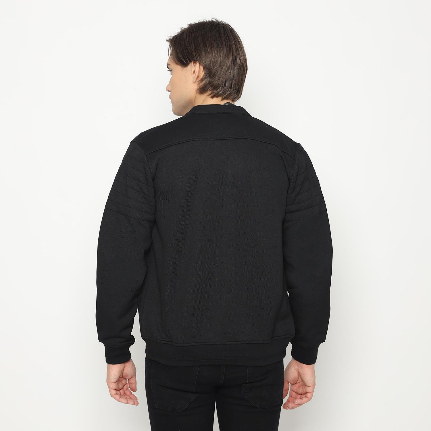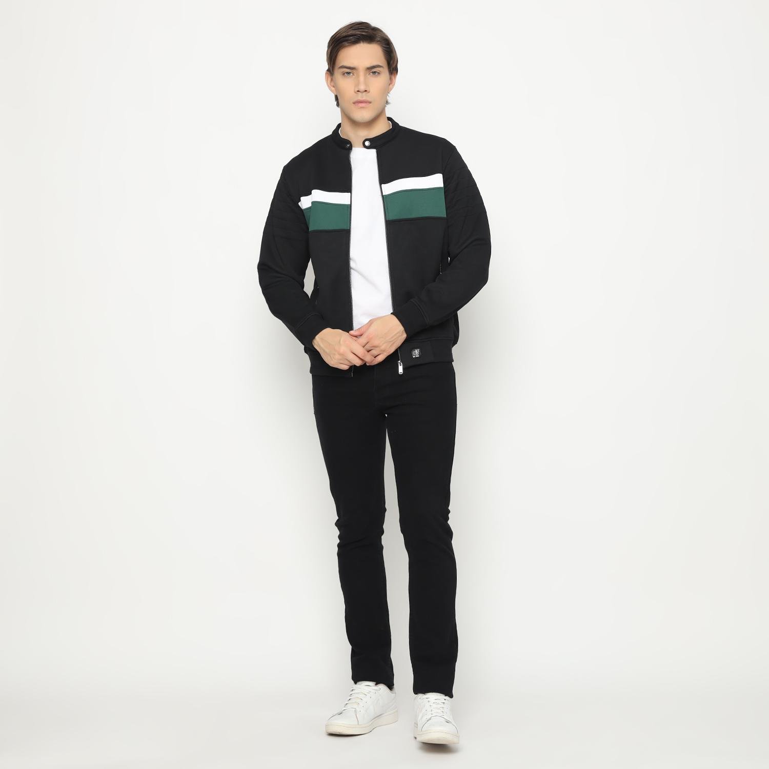 – Jaket bomber detail motif garis bergaya kasual