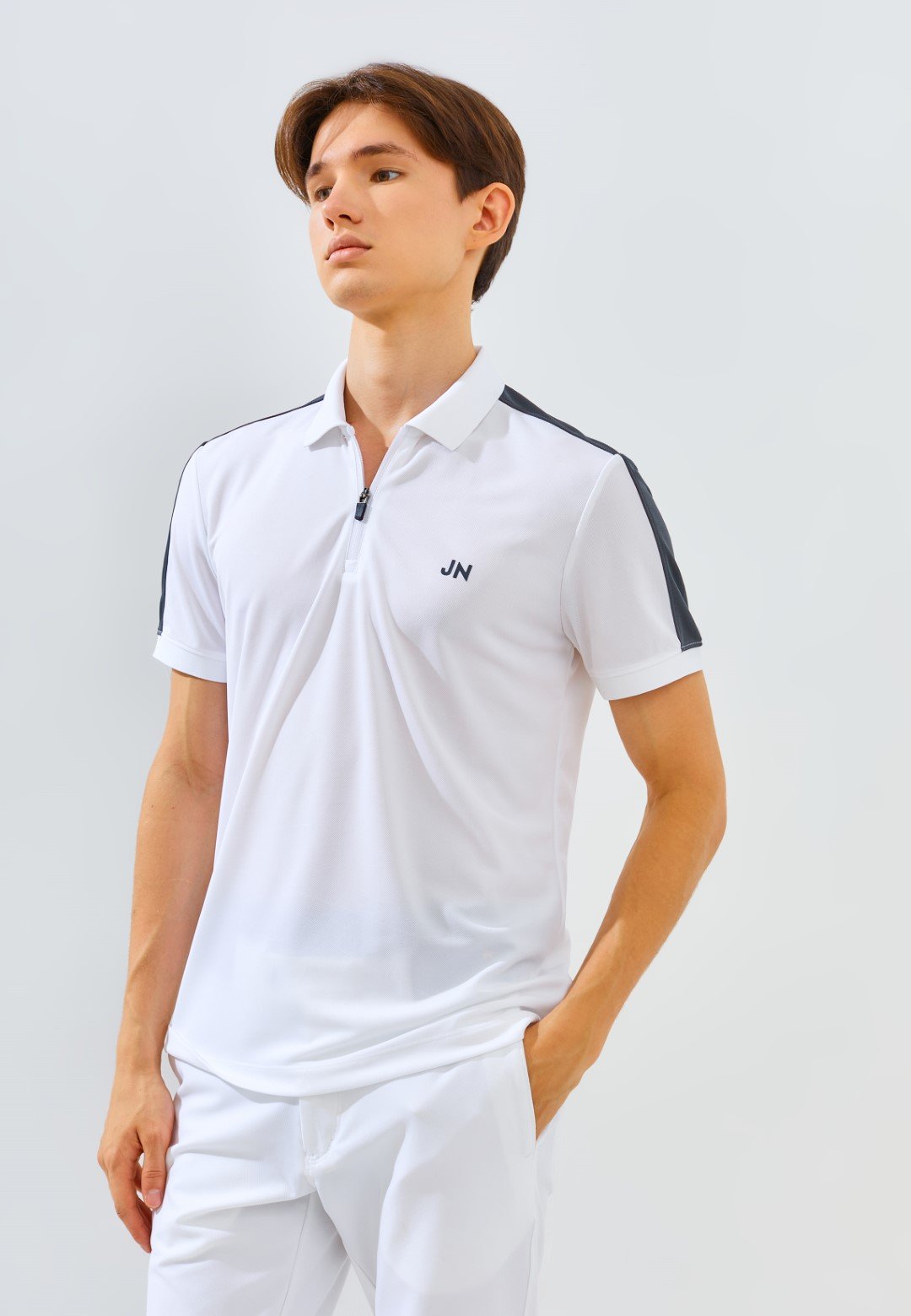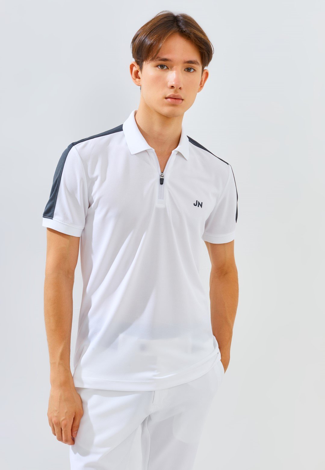 Blue Label  Zips Polo Short Sleeve with Color Block on shoulder