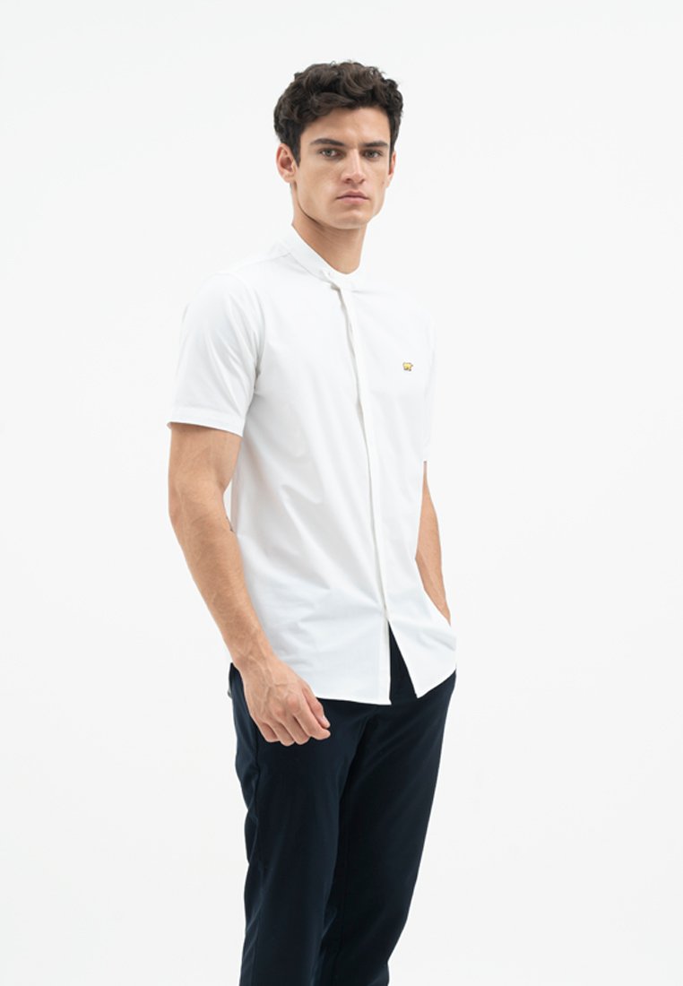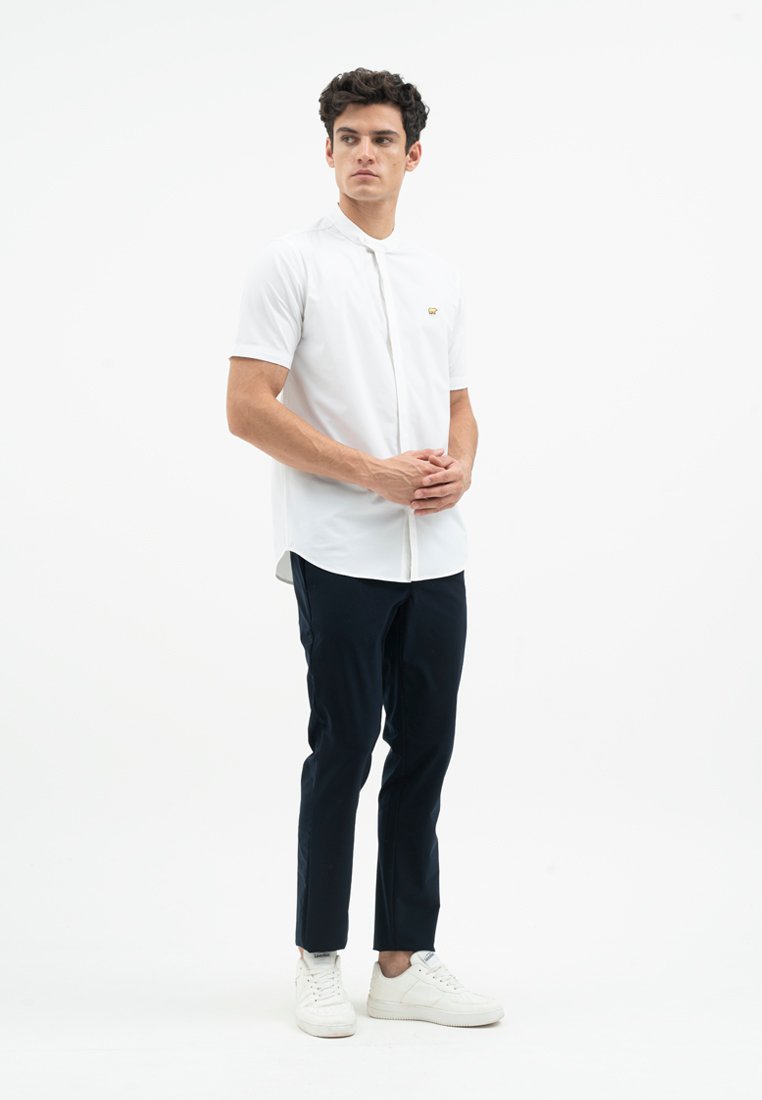 Woven Shirt: Shanghai Collar dengan aksen extension collar