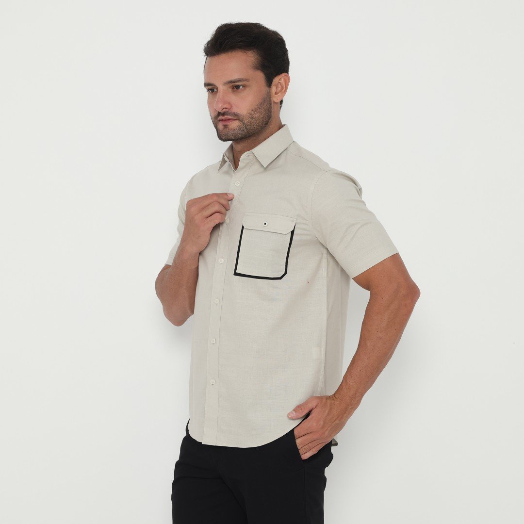 Menggunakan material Linen Look Slub – 100% Cotton, kain ini memiliki tekstur slub yang memberi efek visual seperti linen namun tetap lembut dan nyaman khas katun. Sirkulasi udara yang baik membuatnya ideal untuk cuaca hangat.