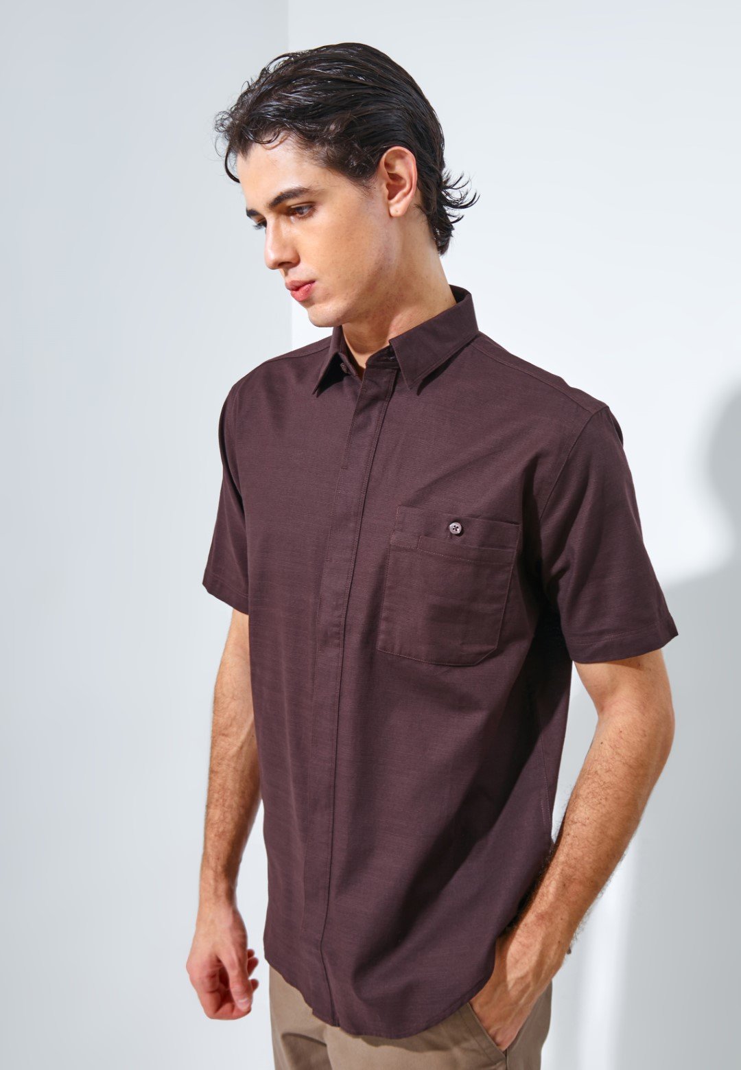 Kemeja ini di design dengan Regular Woven Shirt Tailored Collar dengan Double Pocket