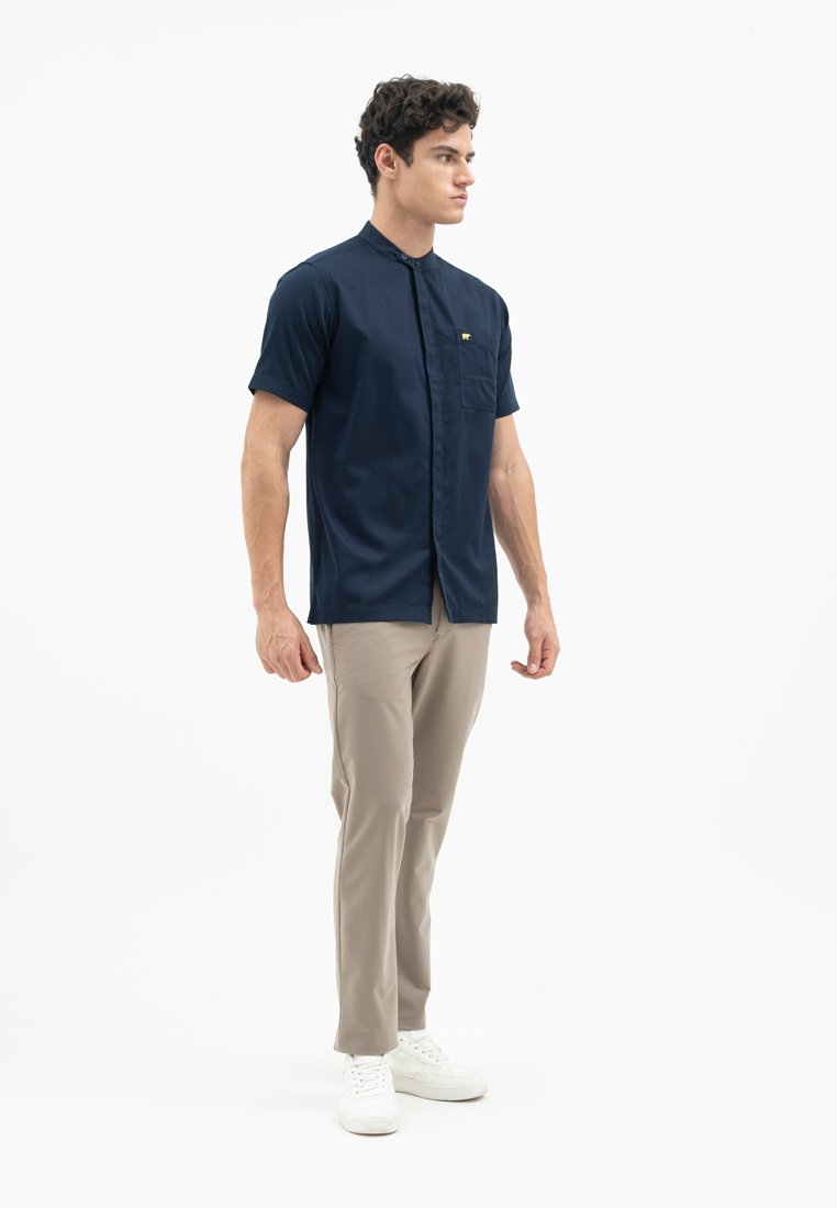 Woven Shirt Shanghai Collar tangan pendek dengan saku