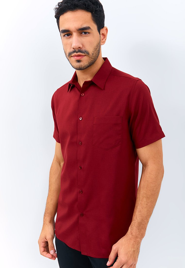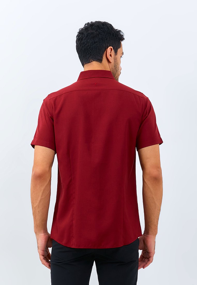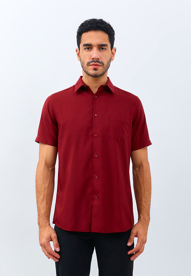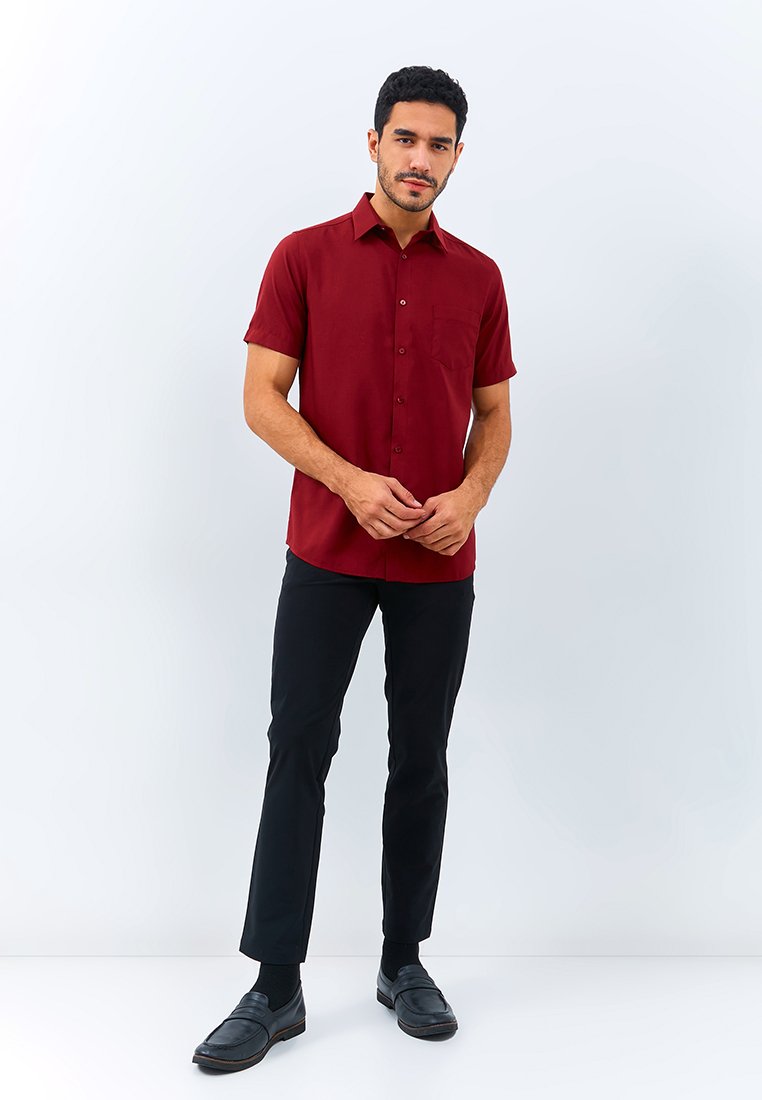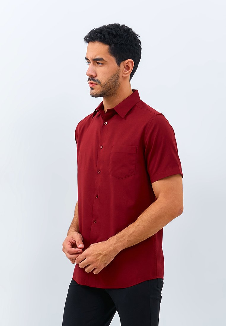Kemeja lengan pendek motif linen look fitting slim fit